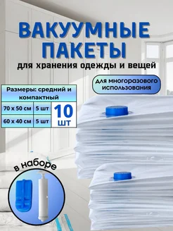 Вакуумные пакеты для одежды 10 шт 70х50, 60х40 с насосом