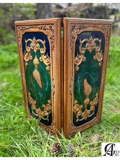 Подарочные нарды с эпоксидкой и резьбой по дереву