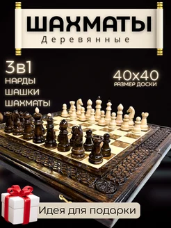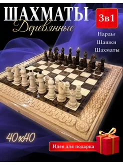 Шахматы 3 в 1 нарды шашки из бука ручная работа