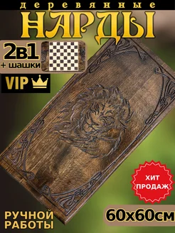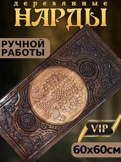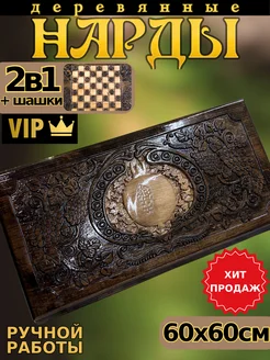 Нарды 2в1 деревянные ручной работы с шашками 60×60 VIP
