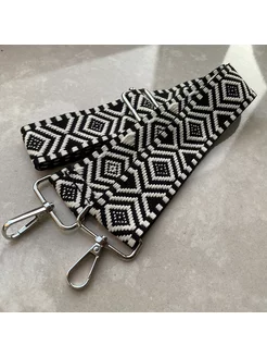 Ручка для сумки Орнамент черный-белый 140*3,8см хром