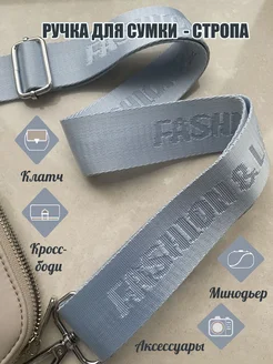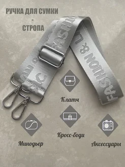 Ручка для сумки светло-серая 132*3,8см карабин хром