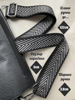 Ручка для сумки черная-серебро Елочка 139*3,8см хром