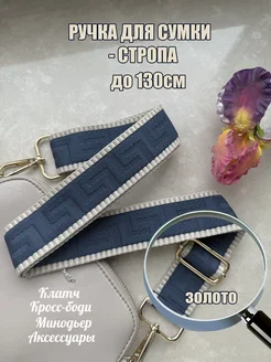 Ручка для сумки Павлиний синий с каймой 130*3,8см золото