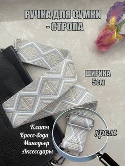 Ручка для сумки серо-бежевый ромб 130*5см хром