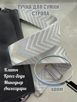 Ручка для сумки серо-бежевая стрелка 130*5см хром