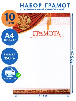 Грамота школьная красная с гербом для принтера 10 шт А4