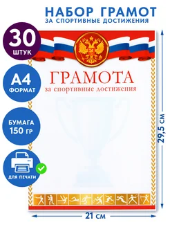 Почетная грамота красная для принтера с флагом 30 шт А4