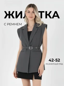 Жилетка костюмная с тканевым ремнем (поясом) серая