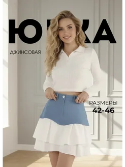 Юбка джинсовая голубая с белыми воланами