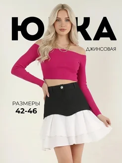 Юбка джинсовая черная с белыми воланами