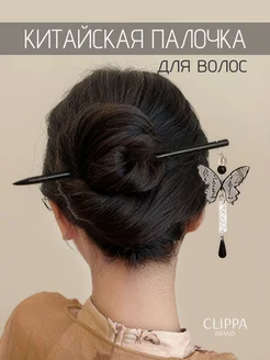 Китайская палочка для волос с декором бабочка и цепочка