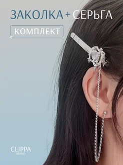 Заколка-зажим с серьгой для уха на цепочке