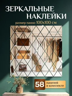 Зеркальные наклейки панно 100 на 100 наклейки на стену 58 шт