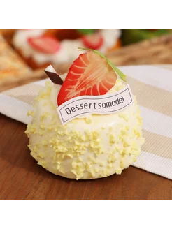 Муляж - магнит "Пирожное Джоли" кокос, 7х7х6см