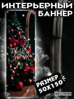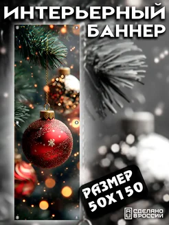 Постер на стену новогодний 50х150 Ёлочная игрушка