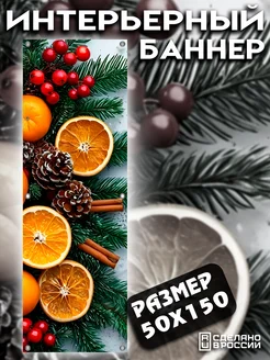 Постер на стену новогодний 50х150 Мандарины