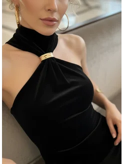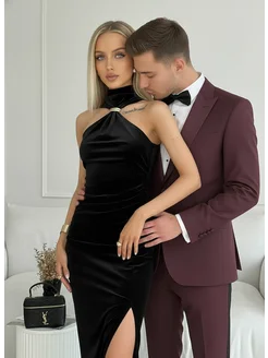 Платье бархатное футляр вечернее с драпировкой и разрезом