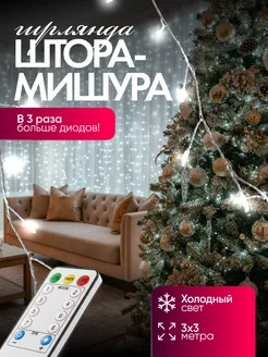 Гирлянда штора роса мишура хвойная лапа 3х3 м