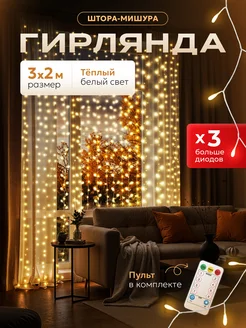 Гирлянда штора роса мишура хвойная лапа 3х2 м