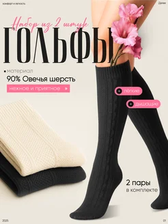 Гольфы теплые высокие 2 пары из шерсти овцы