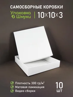 Белые коробки для украшений, 10х10х3 см, матовая ламинация