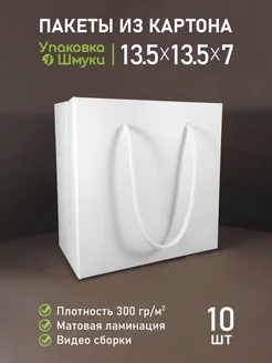 Белые картонные пакеты 13,5х13,5х7 см с ламинацией