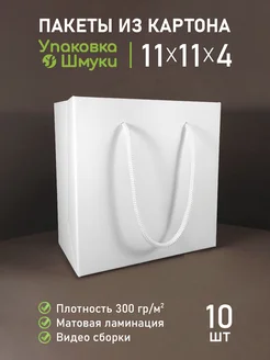 Белые картонные пакеты 11х11х4 см с ламинацией