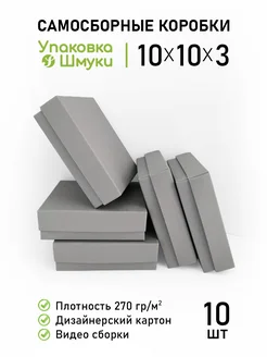 Коробки 10х10х3 см для упаковки украшений, серые, 10 шт