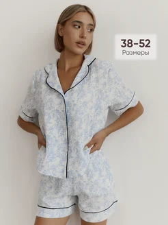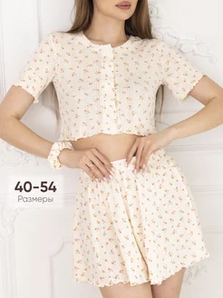 Пижама женская с шортами и топом на пуговицах в цветочек