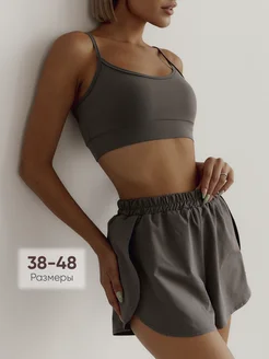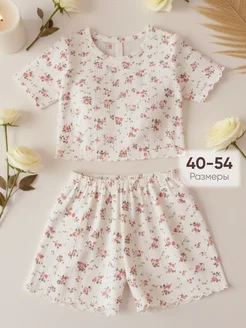Пижама женская с шортами и футболкой хлопок с цветочками