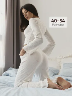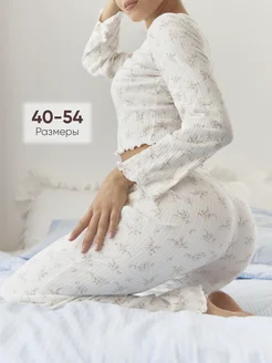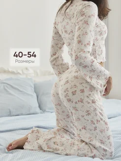 Пижама со штанами и длинным рукавом в цветочек теплая
