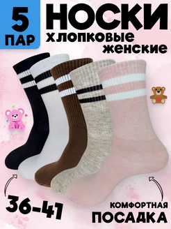 Высокие носки в полоску однотонные набор 5 пар