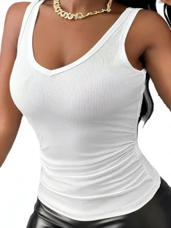 Майка топ в рубчик со сборкой