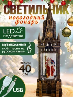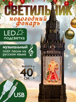 Фонарь новогодний со снегом музыкальный светильник Кремль