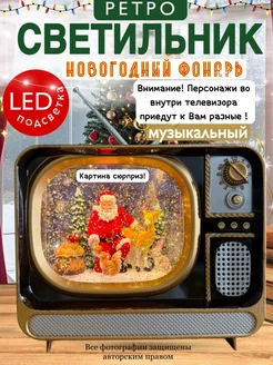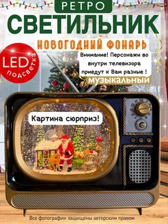 Фонарь новогодний музыкальный со снегом светильник телевизор