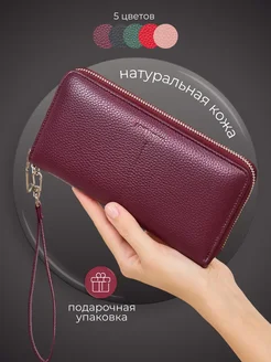 Кошелек из натуральной кожи портмоне на молнии