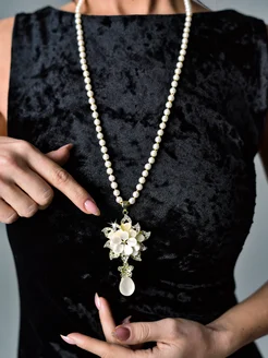 Колье на шею длинное с подвеской-бижутерия-украшения-жемчуг