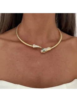 Колье-чокер крепкий змея с зелеными глазами и камнями