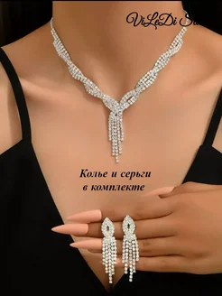 Колье со стразами и серьги в наборе