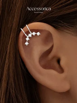 Серьги бижутерия каффы без прокола с камнем Accessorica