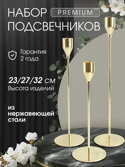 Подсвечники для свечей комплект золотой металлический