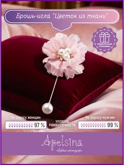 Оригинальная брошь- игла Цветок из ткани стильная