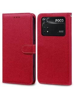 Чехол на Xiaomi M4 Pro 4G красный Поко М4 Про книжка