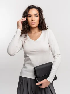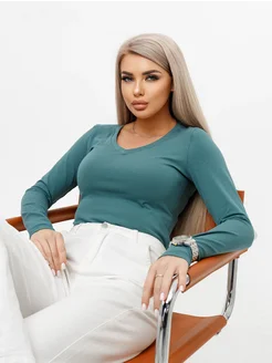 Лонгслив облегающий с вырезом V