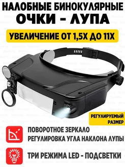 Очки-лупа налобные бинокулярные с подсветкой