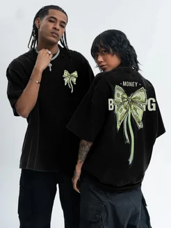 Футболка плотная осенняя оверсайз с принтом Y2k бантик