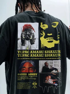 Футболка оверсайз с принтом на спине тупак 2pac варенка y2k