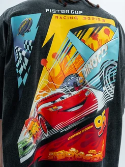 Футболка оверсайз с принтом на спине тачки маквин варенка