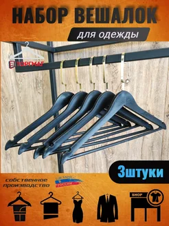Вешалка для одежды пластиковая с текстурой дерева черная 3шт